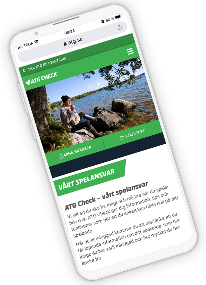 Vill du veta mer? Använd ATGs app eller gå in på ATG.se och välj Spelansvar i menyn.